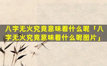 八字无火意味着什 🌸 么?