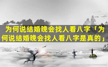 结婚晚会找 🦄 人看八 🐛 字的传统源于中国传统文化中的 🐯 命理学