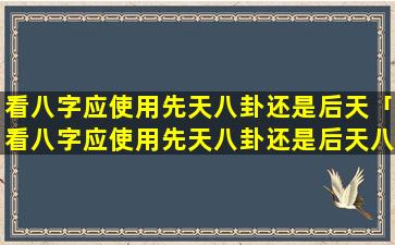 看八字应该使用先 🌹 天八卦。