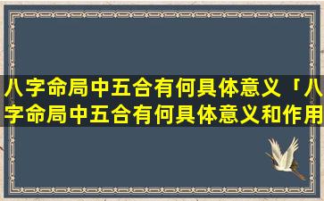 八 🐛 字命局中的五合是指干支之间五行相生相克的一种特殊组合,主要有以下意 🐋 义和作用: