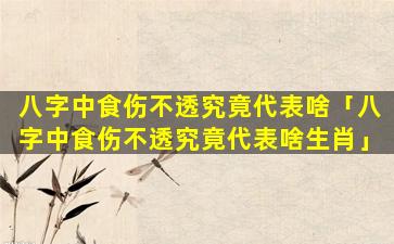 “八字中食伤不透”并不代表特定的生肖食伤。是指八字中的食神和伤官,而透。与不透指是否在命局中出现因此八字中食伤不透,“只”表,示。命局 🦊 中没有食神或伤官透出天干与生肖无关