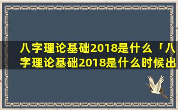 “八字理论基础2018”是2018年出版的一本关于八字命理学基础知识 🐞 的书籍八字命理学是。中国古代的一种命理预测方法,通,过一个人的出生年月日時的 🐧 干支关系来预测其命运包括性格、事、业、婚。姻,健、康、等方、面、该书籍。旨在为读者提供八字命理学的基础知识包括 🐼 阴阳五行十神干支大运流年等方面的概念和解读方法