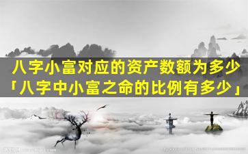 八字中“小富”对应的资产数额没有一个固定的标准,因 🐯 为财富值会随着时代、地、域个 🌺 人情况和通货膨胀等因素而变化。