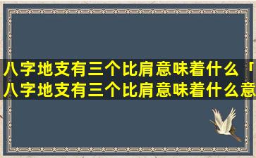 八字命理学中,地支 🦈 中有三 🐴 个比肩表示以下含义: