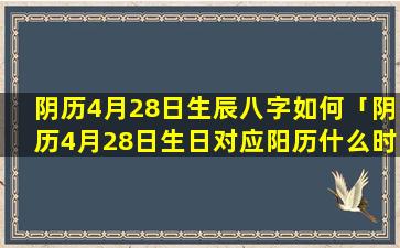 阴历4月28日生辰八 🦍 字身弱,喜,金水忌火土木。格,局。为,食伤生财格主利经 🦁 商投资但要注意婚姻情感方面的竞争和波折以及健康方面泌尿 🦊 系统生、殖。系统疾病的隐患