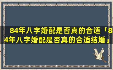 “84年八字婚配是否合适”的问 💮 题无法根据提供的有限信息给出确切的答案。