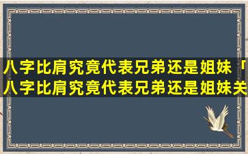 在八字中,比,肩是日主的 🌿 同类五行的地支代表与日主同辈同、性的人。对,于,男性日主来说比肩既可以代表兄弟也可以代表姐妹 🐳 对于;女,性日主。来说比肩则只能代表姐妹
