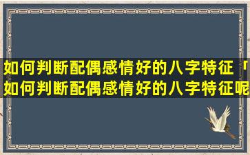 八字中判断配 🕸 偶 🐱 感情好的 🌺 特征: