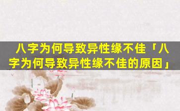 八字中与 🌲 异性缘不佳相关的因 🕷 素 🌴