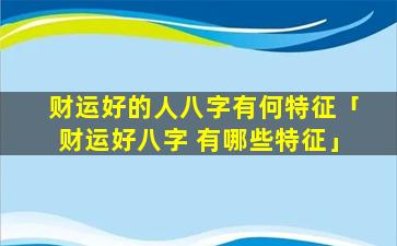注意:以上特征仅供参考,八字财运的判断需综合分析八字整体格局、喜、用神冲合 🐦 刑害等因素。