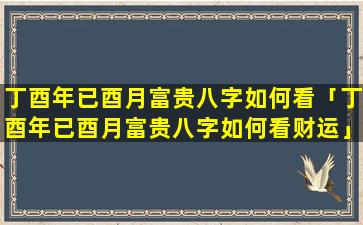 丁 🐡 酉年已酉月八字财运看分 🐴 析 🦄