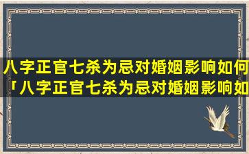 八字中正官和七杀都代表着约束、控、制 🐝 压力等含义。若正官和七杀为忌神,对婚姻的影响主要体现在以下方面: