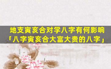 寅亥六合,是地支相合的一种。八,字 🌷 ,中寅亥合,一。般认为是 🍀 富贵的象征但具体是否大富大贵还需要结合其他因素综合判断