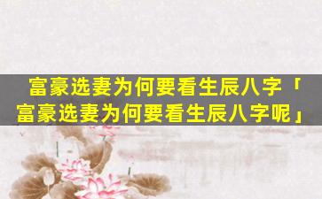富豪选妻为何看生 🐘 辰 🐬 八字?