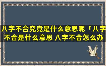 八字不合是指根据生辰八字判断双方不合不,适合进行婚姻 🦍 合、作或其他 🌿 密切关系。