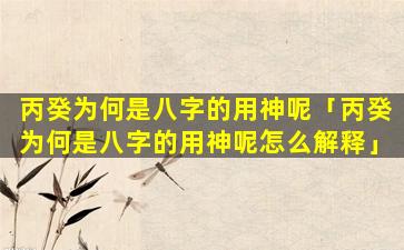 丙癸是 🌷 八字用神的原 🐝 因 🐡 :