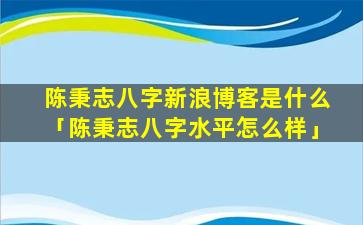 陈秉志是台湾知名的命理师,其八字水平在业界颇受认 🕊 可。以下是一些关于他八字 🐼 水平的评价: