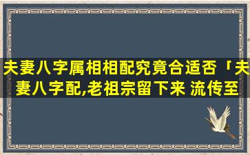 夫妻 💮 八字属 🐈 相相配的传 🌸 统观念
