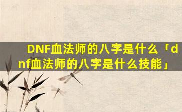 此问题无法回答,因为 DNF 血 🌲 法,师不存在因此没有八字 🐒 。