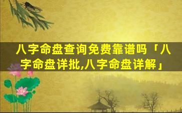 八字命盘查询免 ☘ 费靠谱性的 🕊 评估: