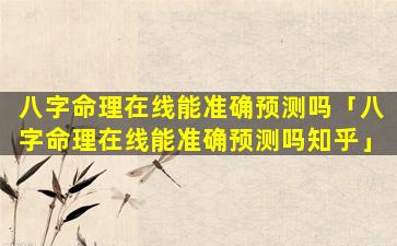 八字命 🦄 理在线能 🦁 准确预测 🐘 吗?