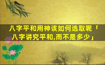 八字 🦆 平 🌻 和 🦊 用神选取原则