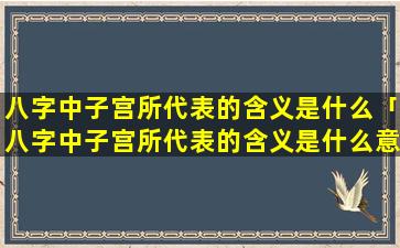 在八字命理学中,“子宫”并不是一个特定的概念。因,“此八字中子宫”所,代。表的 🌲 含义的说法并不正确没有科学依 🐋 据