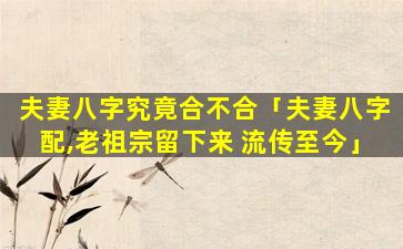 解读 🐎 “夫妻 🌷 八 🌾 字究竟合不合”