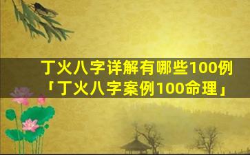 丁火 🐋 八字案 🐧 例100命 🕷 理