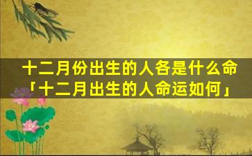 12 月 ☘ 份 🐼 出生的人的命运解读