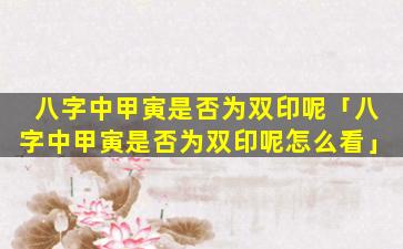 判断八字 🌸 中甲寅是否为 🐺 双印