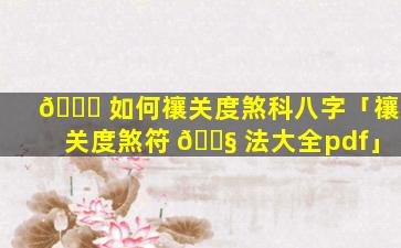 如何禳解关煞科 🌳 八字 🦈