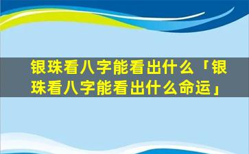趋吉避凶银珠看八字 🦍 能 🌴 看出以下命格: