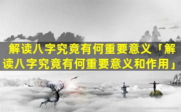 解读八字是一门系统而深 🦊 奥的学问,通,过深入分析八字可以帮助人们了解自身命格、把、握、运势趋吉避凶优化人生。