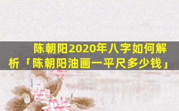 整体分析:2020年八字以庚金偏财为 🪴 日主为偏财,格偏财。代表外财、投、资,意。外,之财,等、说。明陈朝阳在这一年有较多的机会获得财富但由于八字中没有比肩劫财帮身也缺乏正 🐴 官正印来制约偏财容易出现盲目投资决策失误的情况