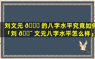 刘文元是中国一位著名的八字命理学家。他的八字水平受到一些人的高 🐵 度评价,但。也有一些 🐳 人对其 🦆 提出质疑