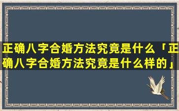 正确的八字合婚方法涉及对男女双方的八字进行深 🌵 入分析和综合匹配,以预测婚 🦄 姻关系的吉凶。但,需,要。注意的是八字合婚仅 💮 是一种占卜方法不能完全决定婚姻的走向
