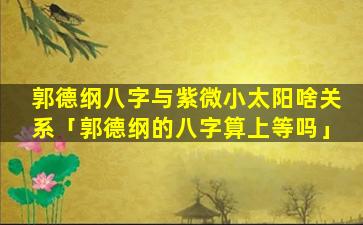 郭 🐋 德纲的 🐺 八字与 🐧 紫微小太阳星的关系是: