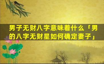 男子无 🌸 财八字,意 🦊 味着: