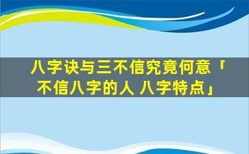 八字诀与三不 🐠 信的 ☘ 含义 🐼