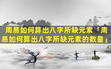 周易 🦢 本 🐶 身没有“八字”或“算”出八字所缺元素的说法 🐱 。