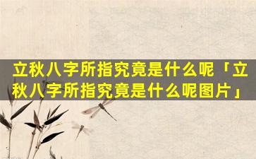 立秋八字是指 🐬 立秋当天的八个干 🦁 支,即年、月、日、时。