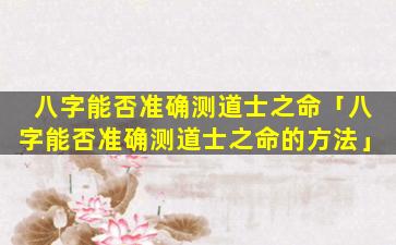虽然八字可以用于预测多种命运,但它并 🌸 不能准确测定道 🐟 士之命。