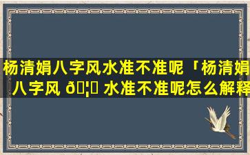 杨清娟是一位知名的风水师,她在八字风水领域颇有建树。其,八字风水主要以八字命理为基础 🐕 结合风水峦头 🕸 命理、择。吉等方法进行预测和调理