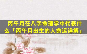 丙午月在八字 🌸 命理学中 🌷 代表: