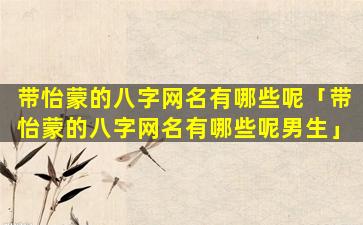 带怡 🪴 蒙的八字网名有哪些呢「带怡蒙的八字网名有哪些 🐠 呢男生」