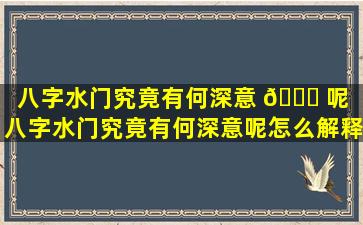 “八字水 🐡 门 🐕 ”的深意 🦅