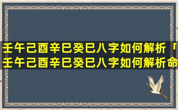 四柱八字:壬 💐 午、己、酉、辛巳 🦟 癸巳