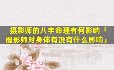 根据八字命理学,摄影师 🐳 的八字命 🦁 格可能会对他们的职业道路产生 🐦 一定的影响: