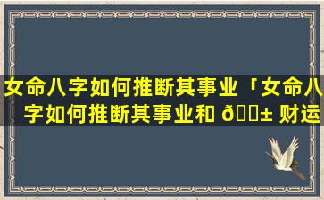 如何根据八字推断女性的 🌷 事业 💐 和财运 🕸